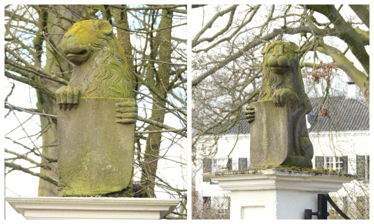 We hadden een hele tijd over het landgoed Verwolde gelopen, tijdens deze etappe van het Pieterpad. Aan de rand van het landgoed, vlakbij Laren, sierden de poortwachters de statige villa met de grote tuin.