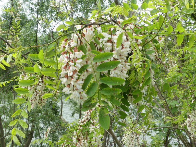 Buiten het dorp liepen we op een zandpad, met als enige geluiden het stromende water en vogelgezang en we werden bedwelmd door de heerlijke geur van de schijnaccacia.