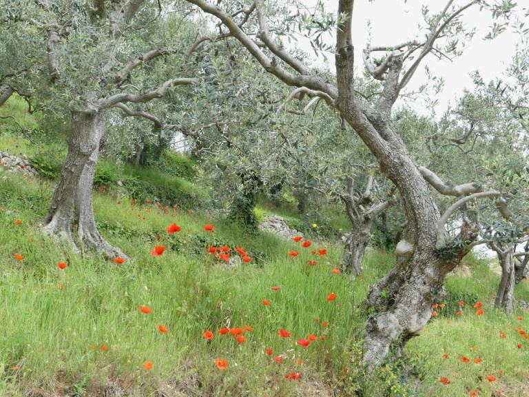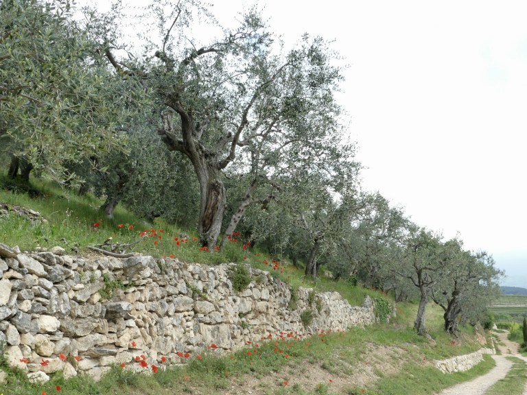 Op de wandeling naar San Pietro zagen we uitnodigende borden staan en we namen een flinke omleiding op de koop toe. Het was hier overduidelijk, dat we in de Valpolisella wijnstreek waren. We werden dwars door wijn- en olijfgaarden geleid.