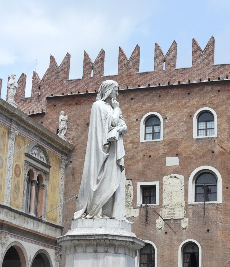 Zijn hele leven woonde de dichter/schrijver in Florence, totdat hij verbannen werd, om zijn politieke ideeën. In Verona vond hij bescherming en daar heeft hij 7 jaar op het landgoed gewoond, dat nu nog zijn naam draagt. Hier heeft hij waarschijnlijk het werk geschreven, dat hem tot heden ten dage nog wereldberoend maakt: La divina commedia, de Goddelijke komedie, over hel, voorgeborchte en het paradijs.