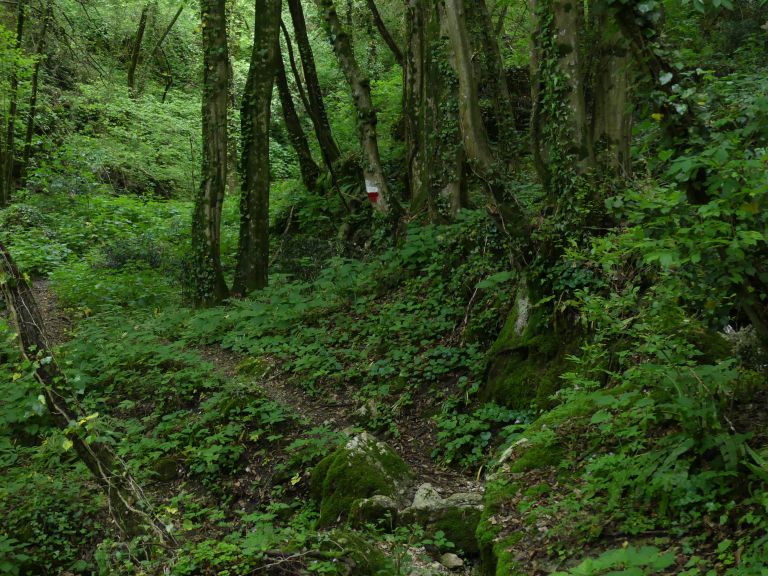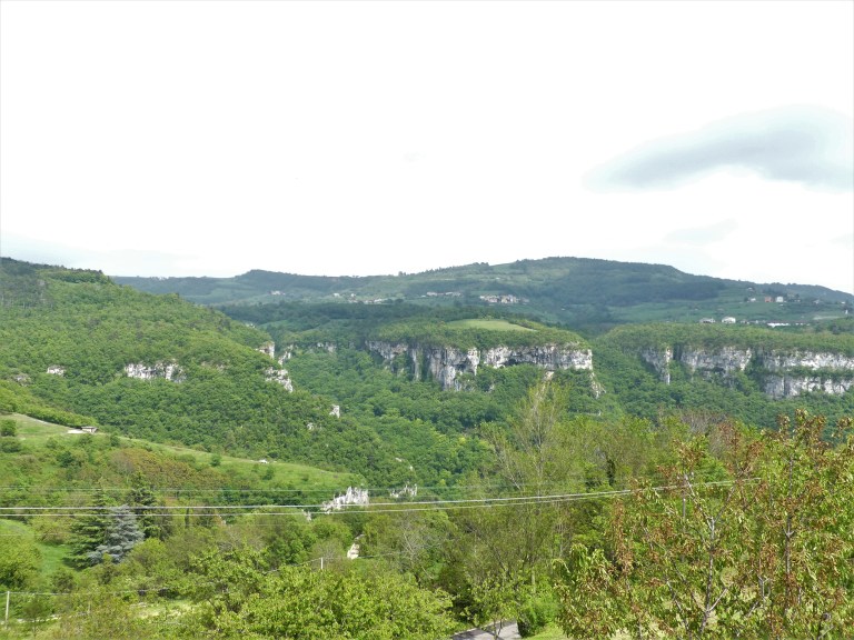 Helaas bleek er volgens een Italiaans vrouwtje geen busverbinding te zijn in Molina. Er zat voor ons niets anders op, dan terug te lopen naar een dorp, waar wél een bus langs kwam. Gelukkig was het lopen over gewoon wegdek, alsof je net, zo fris als een hoentje, aan de wandeling begon. We kregen ook nog even een overzicht van het ravijn waar wij dus langs beide kanten gezwoegd hadden. We bedachten, hoe gevaarlijk we bezig geweest waren, maar het was ons overkomen. Had ik het van tevoren geweten, dan had ik deze wandeling niet gemaakt, maar eigenlijk, achteraf had ik het ook niet willen missen. Dit was nog eens een échte natuurwandeling. Dankbaar waren we ook, dat we dit nog kunnen op onze leeftijd. De spannende momenten waren alweer vergeten.
