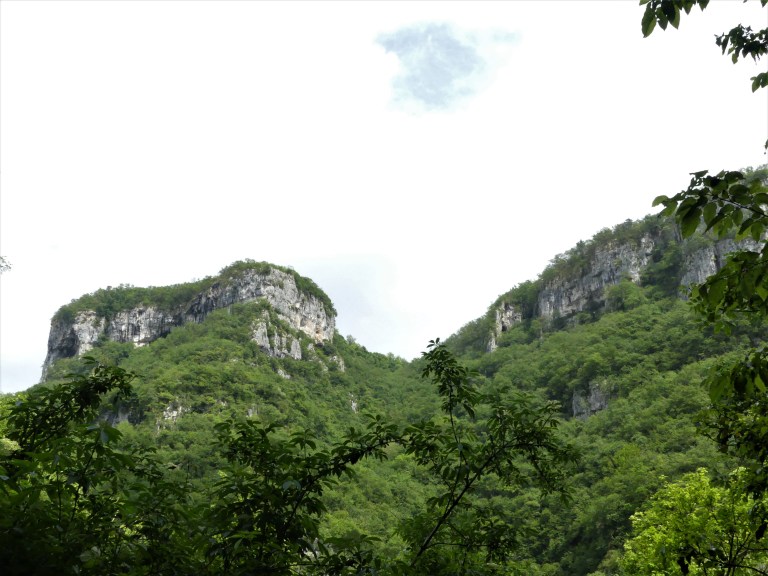 Je verwachtte verder naar beneden te dalen, naar het riviertje, waar de watervallen in uitkwamen, maar het onherbergzame pad ging weer omhoog. Dat was niet goed voor de moraal. Ik had knikkende knieën en het ontbrak mij op een gegeven moment aan de kracht om me op een rotsblok te hijsen. Gelukkig was er niemand in de buurt, die mijn gestuntel kon zien, want die had hard gelachen. We zijn uiteindelijk uit het ravijn weer omhoog geklauterd. Het pad werd beter. Ik kon wat ontspannen en om me heen kijken. Het was indrukwekkend die natuur!