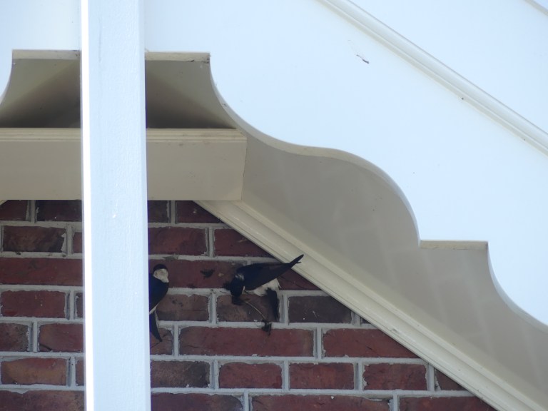 Dat zou niet de eerste keer zijn, want 11 jaar geleden probeerden ze het al eens. Vóórdat wij in 2008 in ons nieuwe huis trokken, begonnen er zich al zwaluwen te nestelen. Helaas vonden de bouwers en medebewoners het zonde van het nieuwe huis, dat dan vast onder gescheten zou worden. Ze hebben toen een extra plank aangebracht in de nok, om te voorkomen, dat er een nest gebouwd zou worden. Ik heb dat altijd jammer gevonden.