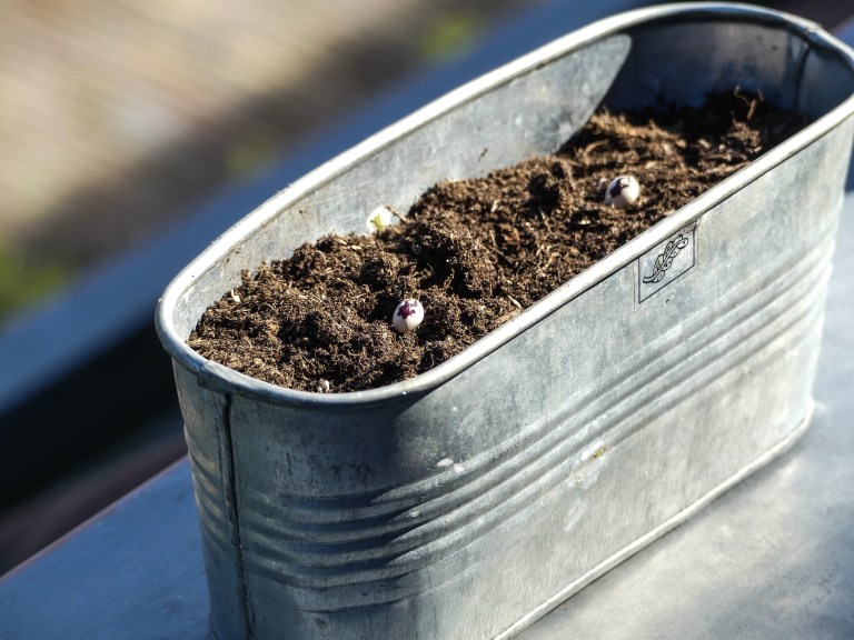 Ik heb geen tuin, maar zaaide een paar bonen van Toos in een bakje