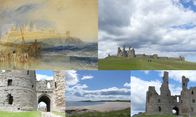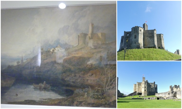Op een dag bezochten we, in het stadje Berwick, een tentoonstelling  over het werk van Joseph Mallord William Turner: Northern Exposure. Wat schetste onze verbazing toen bleek, dat William Turner, rond 1797 ongeveer dezelfde wandeling heeft gemaakt als wij deden (en nog veel verder). Hij legde zijn indrukken vast in zijn schilderijen net zoals ik dat met fotograferen doe. Door een paar van Turners schilderijen naast wat foto’s van hetzelfde onderwerp te zetten (in dit geval kastelen), geef ik jullie op deze manier nog een indruk van dit lange afstandspad, the St. Oswald’s Way, want kastelen zijn er een onmisbaar onderdeel van.