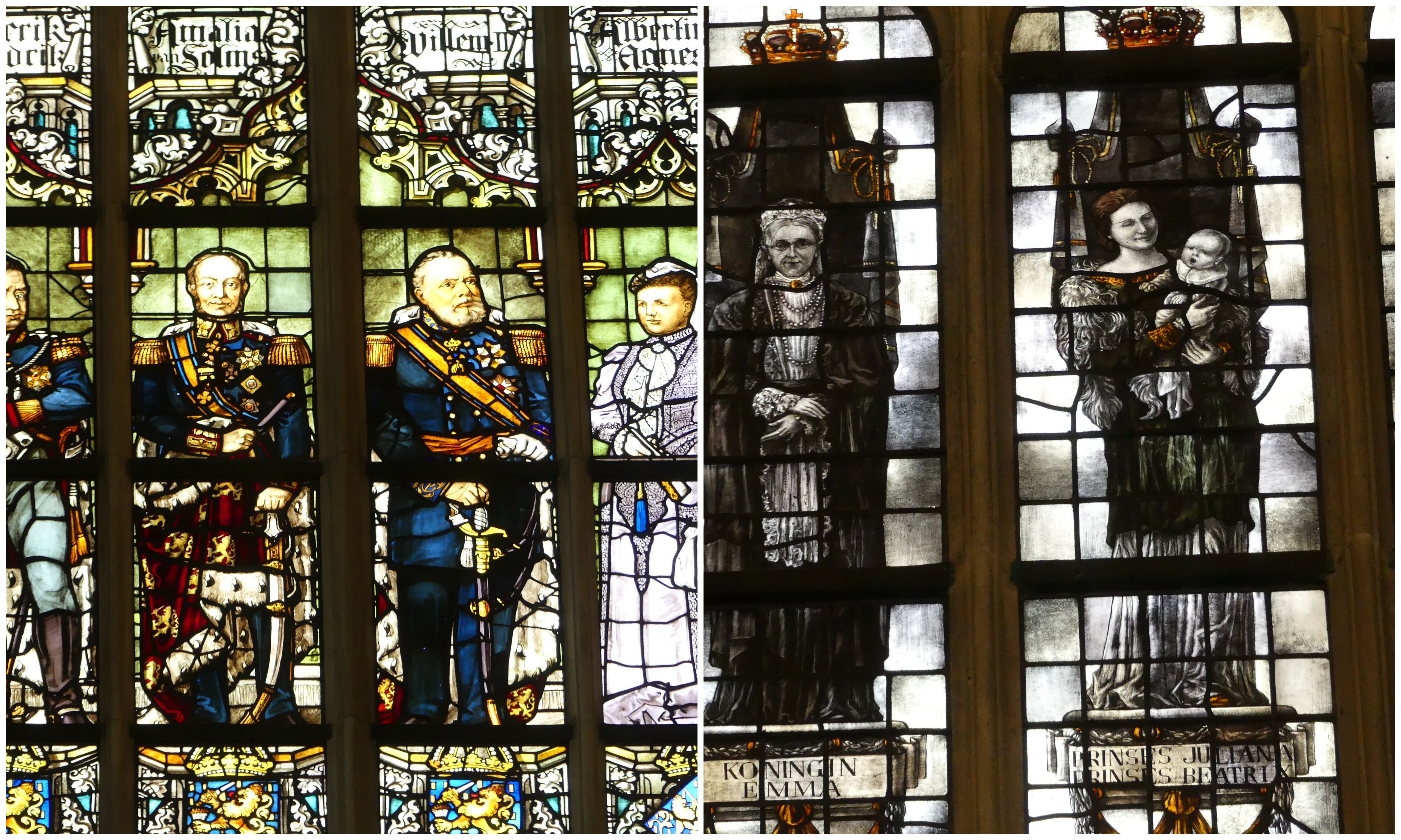 En tot slot noem ik nog de koninklijke ramen. Leuk om al de oud koningen en koninginnen in de glas-in-lood-uitvoering te zien. Beatrix is nog een baby op de arm van haar moeder Juliana.