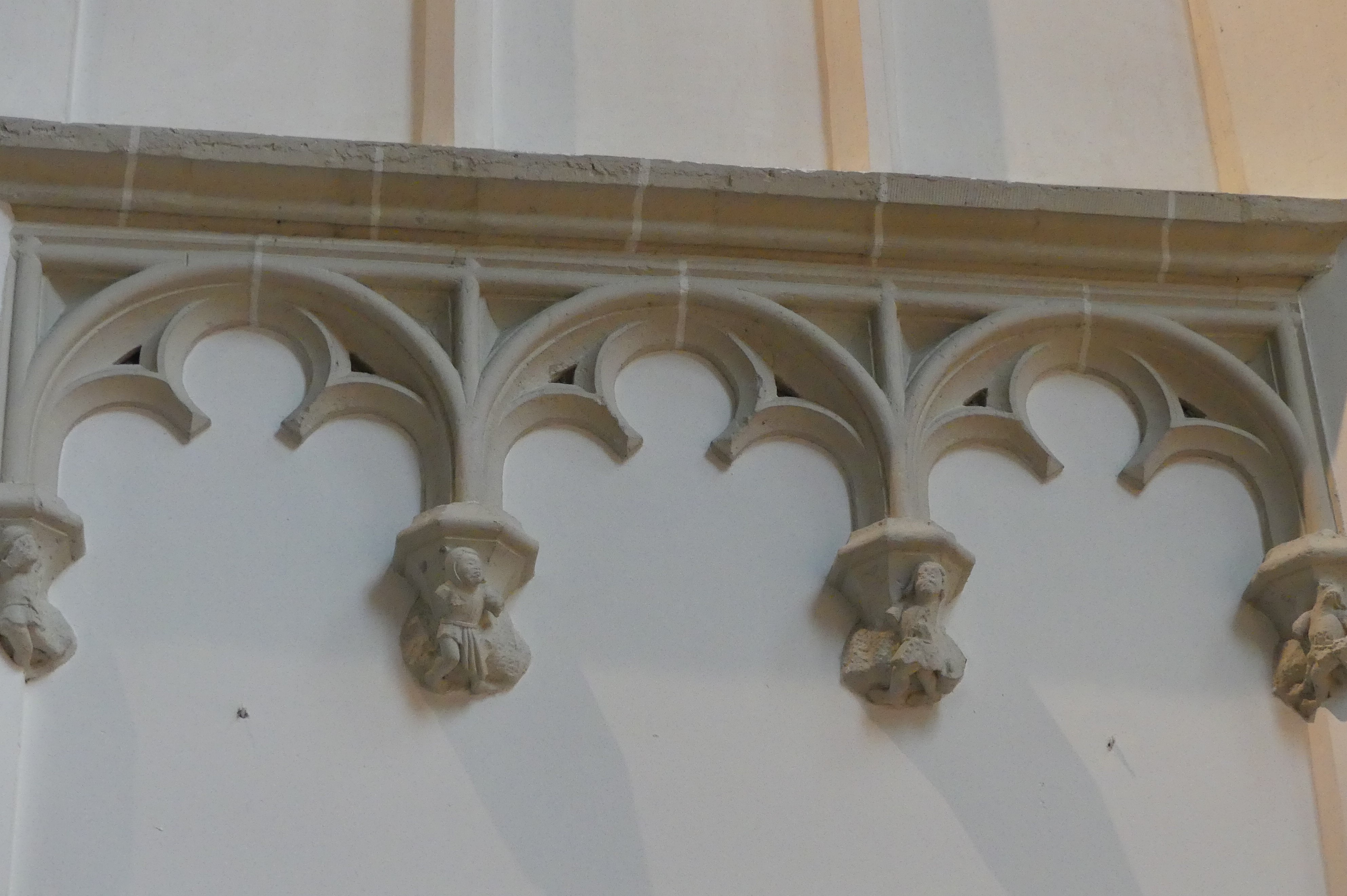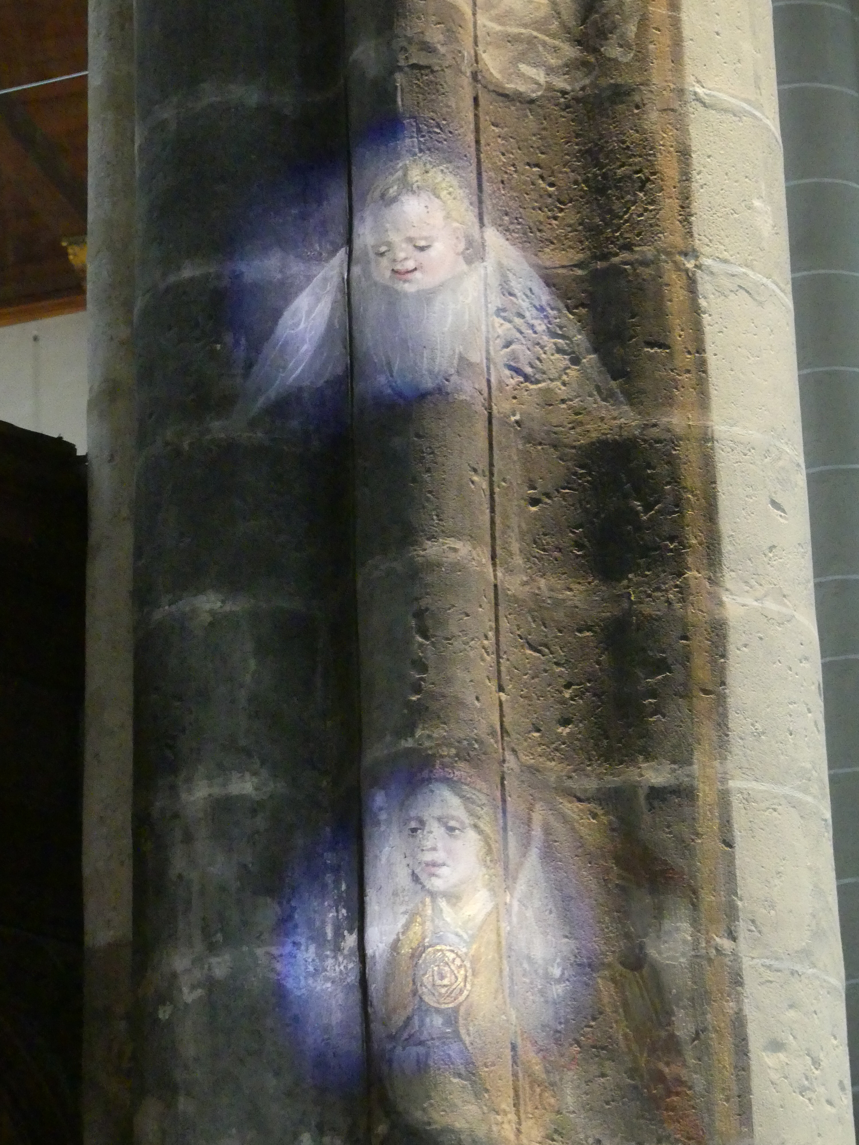 Gaande weg in de tijd is men toch eens gaan kijken wat er onder die dikke lagen witte verf zit en nu prijken er dus prachtige antieke engelen op de pilaren.