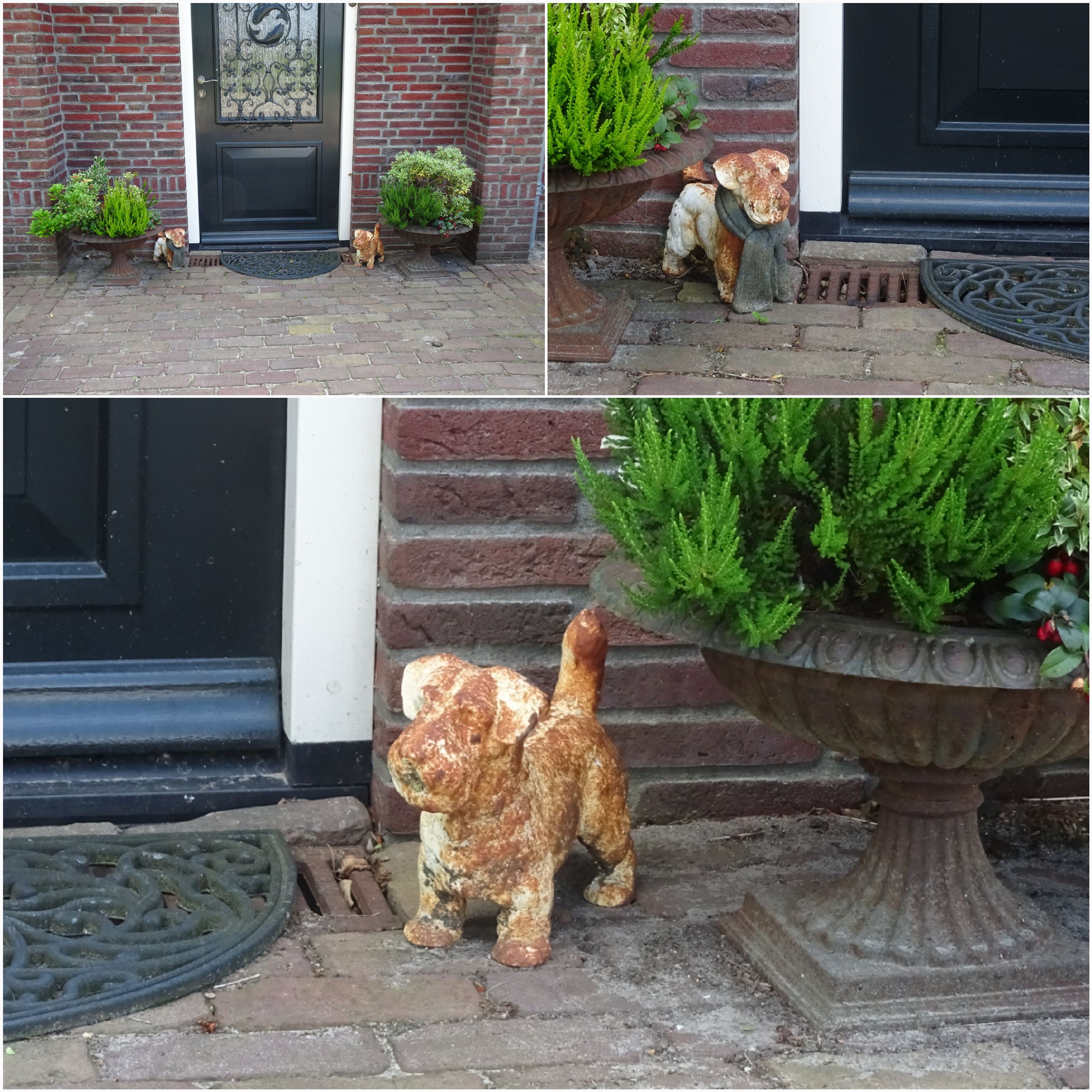als de hondjes staan bij hetzelfde adres. Gespot aan de Zalkerdijk tijdens een fietstocht rond Zwolle. De eigenaresse is vooral trots op de hondjes, die al meer dan 30 jaar naast haar voordeur staan.