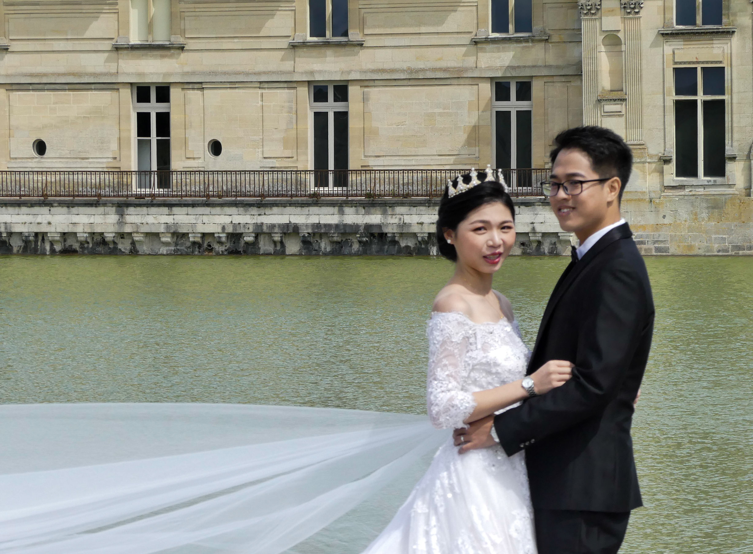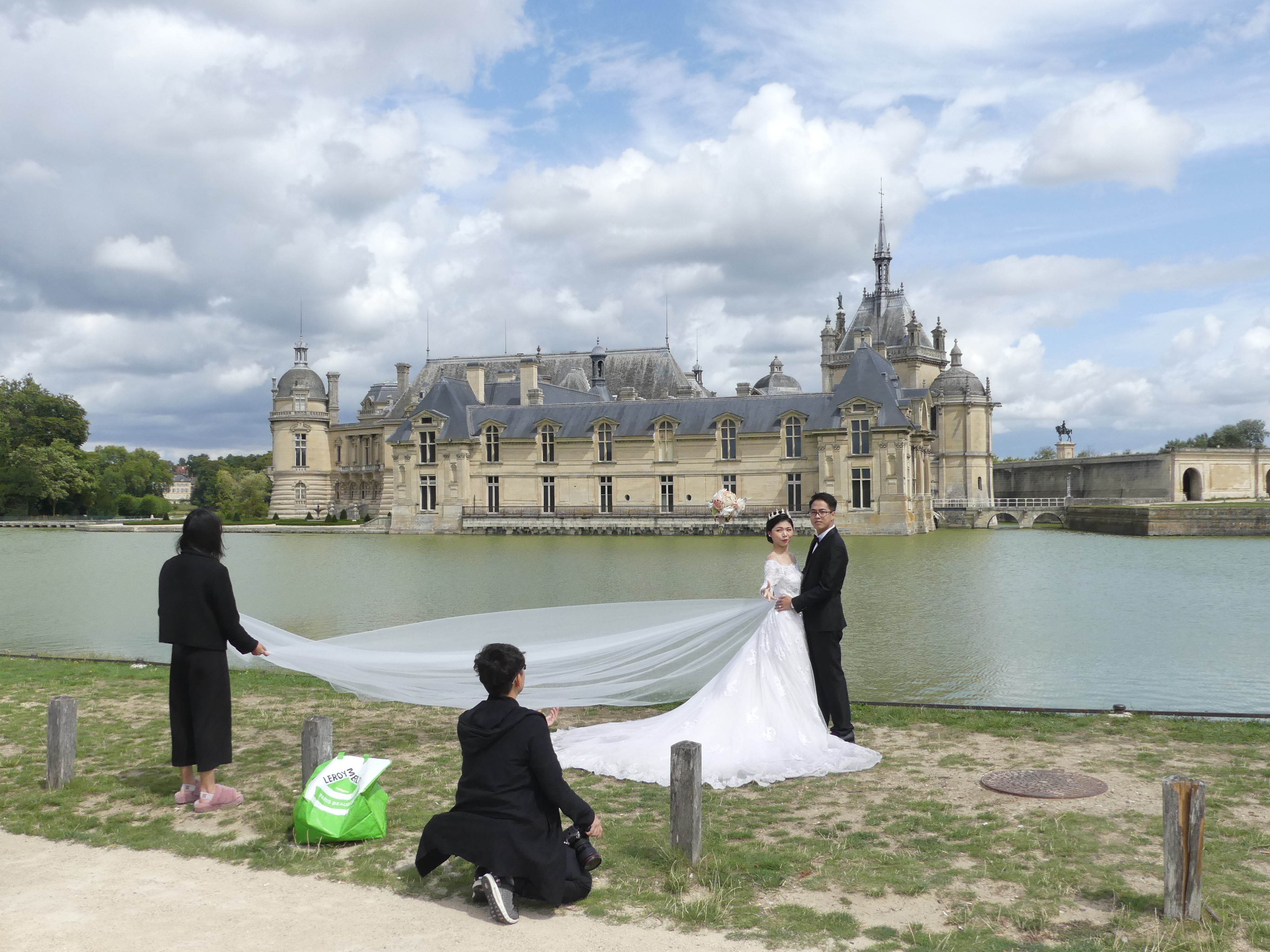 Dus bij het zien van dit tafereel greep ik mijn kans om alvast even te oefenen! Als je voor Kasteel Chantilly op de foto gaat, lijkt me dat wel de ultieme locatie voor het maken van trouwfoto’s……..