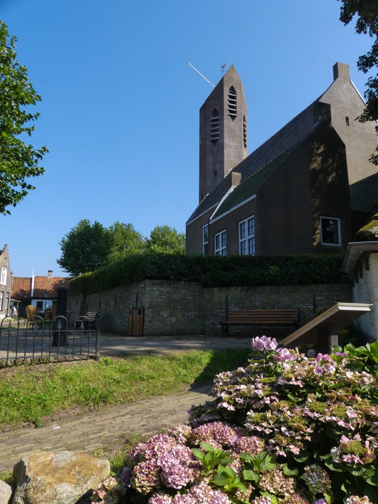 Vrienden van ons hebben een seizoensplaats op een camping op Texel. Met het mooie vaste weer, leek het ons maandag een prima dag om hen op te zoeken. De huurfiets bracht ons naar de camping, waar we de dag begonnen met een lekker kopje koffie. Nadat we gezellig waren bijgepraat fietsten we verder over het eiland. Het was lekker warm, eigenlijk niet helemaal ‘des Texels’ waar toch altijd wel een verkoelend briesje hoort te waaien. Vandaag was er weinig wind en het werd meer dan 26 graden. We zochten dus de schaduw op en fietsten grotendeels door het bos van Den Hoorn naar De Koog, waar we onze eerste tussenstop deden. We genoten van het weerzien met oude bekende plekken. Ooit (zo’n 38 jaar geleden) waren we hier een aantal keren op vakantie. Onze vakantiewoning stond er nog, waar onze zoon zijn eerste stapjes zette. Ook de weg over het duin naar het strand, waar we liepen met de bolderwagen vol spullen.