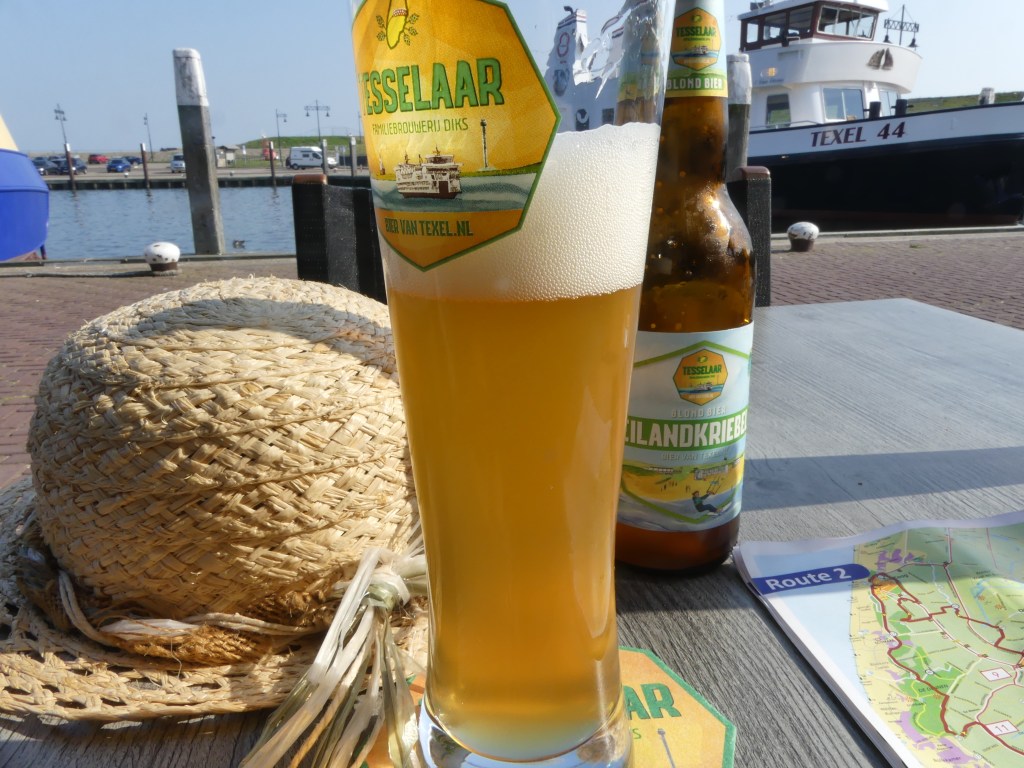 Bij een Tessels biertje van één van de plaatselijke bierbrouwerijtjes haalden we herinneringen op aan vaartochten, die we maakten met klassen kinderen, want toen ik werkte gingen we jaar na jaar met schoolklassen voor een werkweek naar Texel. Leuk om het allemaal terug te zien.