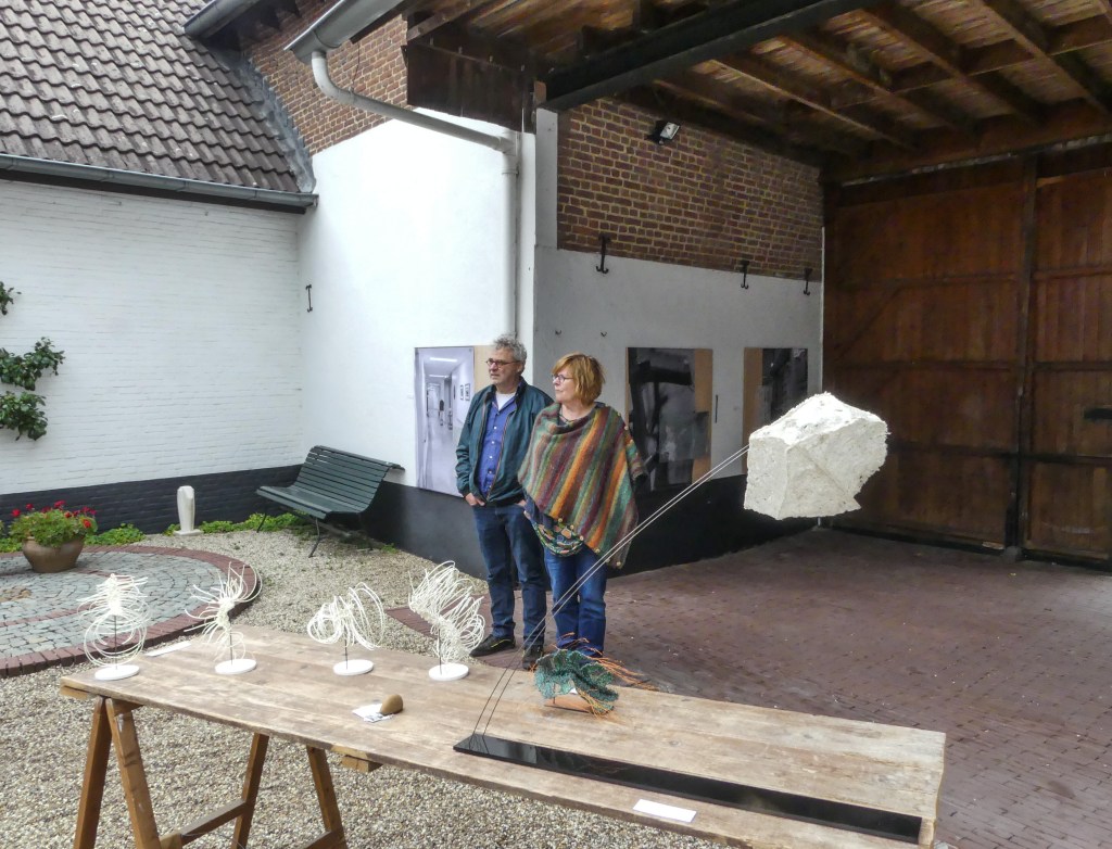 Verder ging het naar Puth, waar mijn zus als locatie een mooi oud Limburgs boerderijtje heeft uitgekozen. Daar komt haar werk heel mooi uit tegen de oude muren in de beschutting van een binnenplaats.