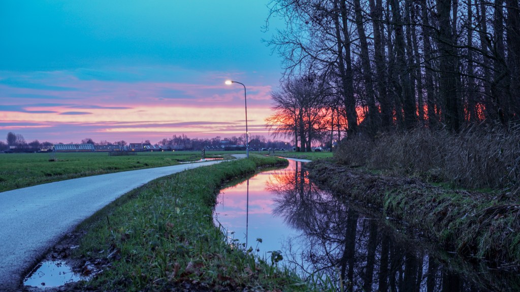 Vanmorgen heb ik geprobeerd het midwinterlicht te vangen met mijn camera. Deze tijd van het jaar hoef je niet echt vroeg op om de zonsopkomst te registreren, maar de schemering kent rondom dat moment veel kleurschakeringen. Ik moet eerst nog even fietsen om buiten het dorp te komen. Er was vanmorgen een prachtig rode gloed te zien, maar ik was nog niet op de plek van bestemming. Ik was bang dat het weg zou zijn, dus ik pakte mijn statief toch maar alvast onderweg uit met deze snelle foto als resultaat.