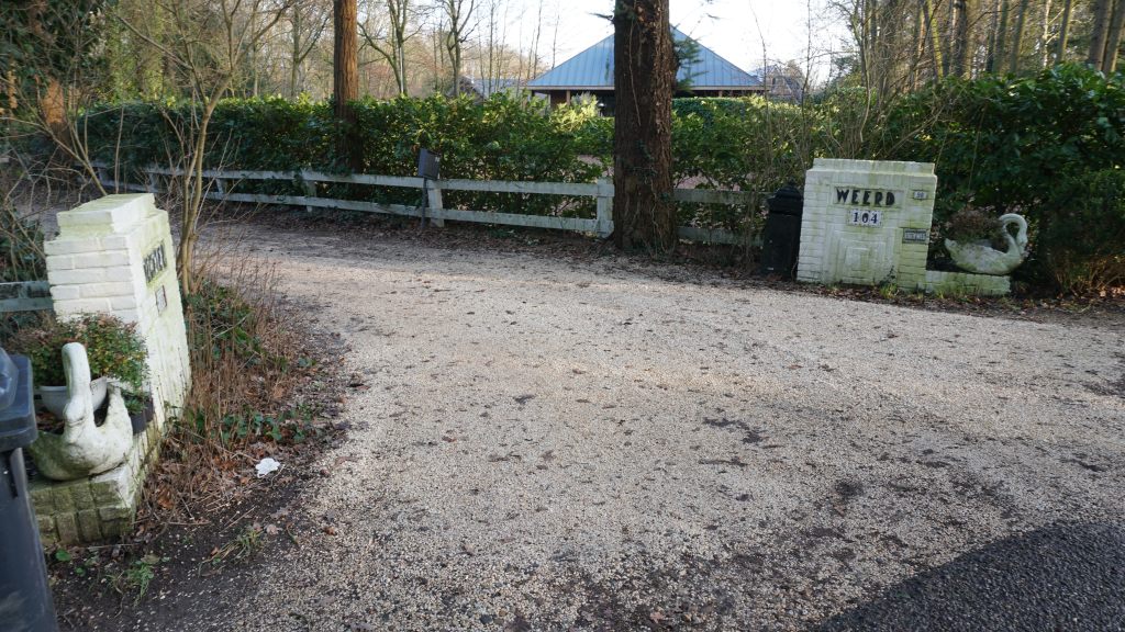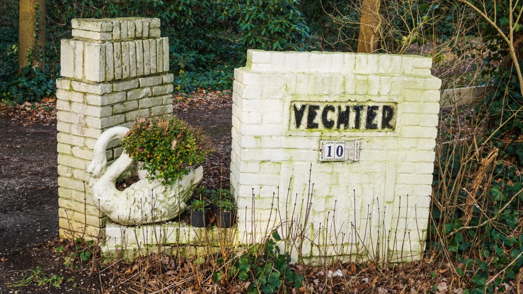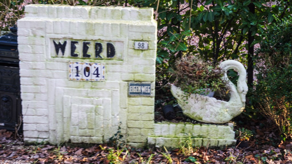 In Zwolle, aan de rand van het park om de begraafplaats Bergklooster heen, viel mijn blik op deze zwanen bij de oprijlaan naar de Vechterweerd. De naam Vechterweerd komt meer voor rondom Zwolle. Het heeft te maken met de Overijsselse Vecht. In de buurt ligt ook een landgoed met dezelfde naam. Ik kwam er niet achter of het huis wat bij deze oprijlaan ligt daar iets mee van doen heeft. Maar ik zag wel, dat er ook allerlei instanties in deze omgeving deze naam dragen, zoals een zorginstelling en een onderwijsstichting.