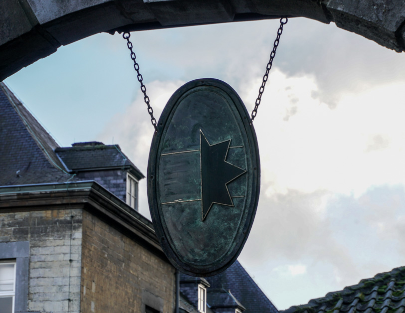 Boven de toegangspoort van Kasteel Neercanne aan de Belgische grens bij Maastricht, hangt dit (wapen) bord. Ik zie er een halve ster in.