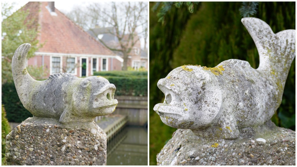 Het is jammer, dat ik nooit te weten zal komen, waarom de bewoners van deze boerderij kiezen voor vissen als poortwachter. Het lijken me toch niet de meest waakzame dieren, die er bestaan, maar ik vind ze stiekem wel leuk en origineel.