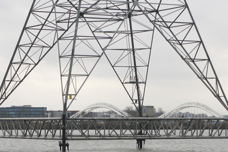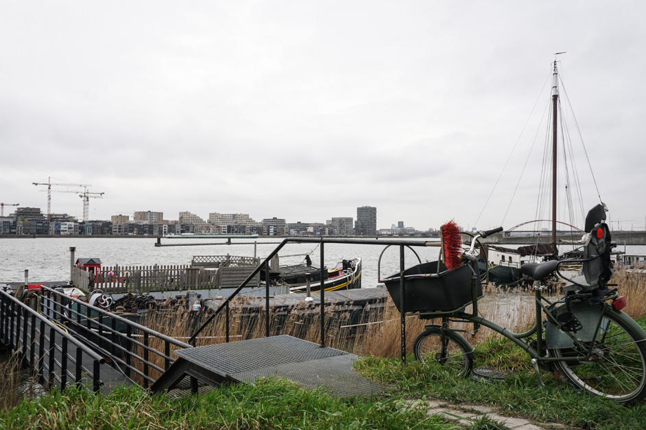 Aan de overkant van het water ligt IJburg en verderop zagen we de ingang van de Piet Heintunnel, die de auto’s onder het water door leidt.