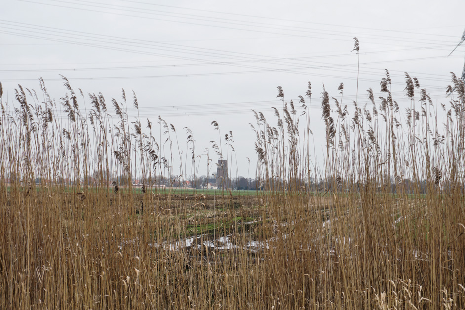 De zon kwam erdoor, dus wij besloten richting Ransdorp te gaan om een wandeling te maken, voordat de regen, die voorspeld was zou losbarsten. De robuuste toren (zonder spits) zie je mijlenver in ons platte Waterland liggen.