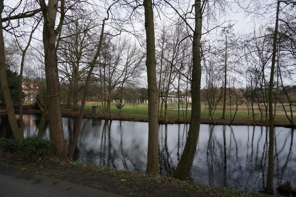 In de verte zie je al de contouren van het strakke museumgebouw, opgetrokken uit natuursteen met veel glas. Ernaast staat een monumentaal oud Engels landhuis, dat nu o.a. dienst doet als restaurant.