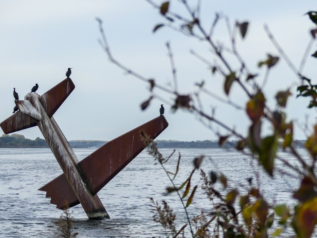 Overal in het land vind je herdenkingsmonumenten. Deze foto van neergestort vliegtuig staat bij Harderwijk en is het monument voor alle omgekomen vliegers op het IJsselmeer.