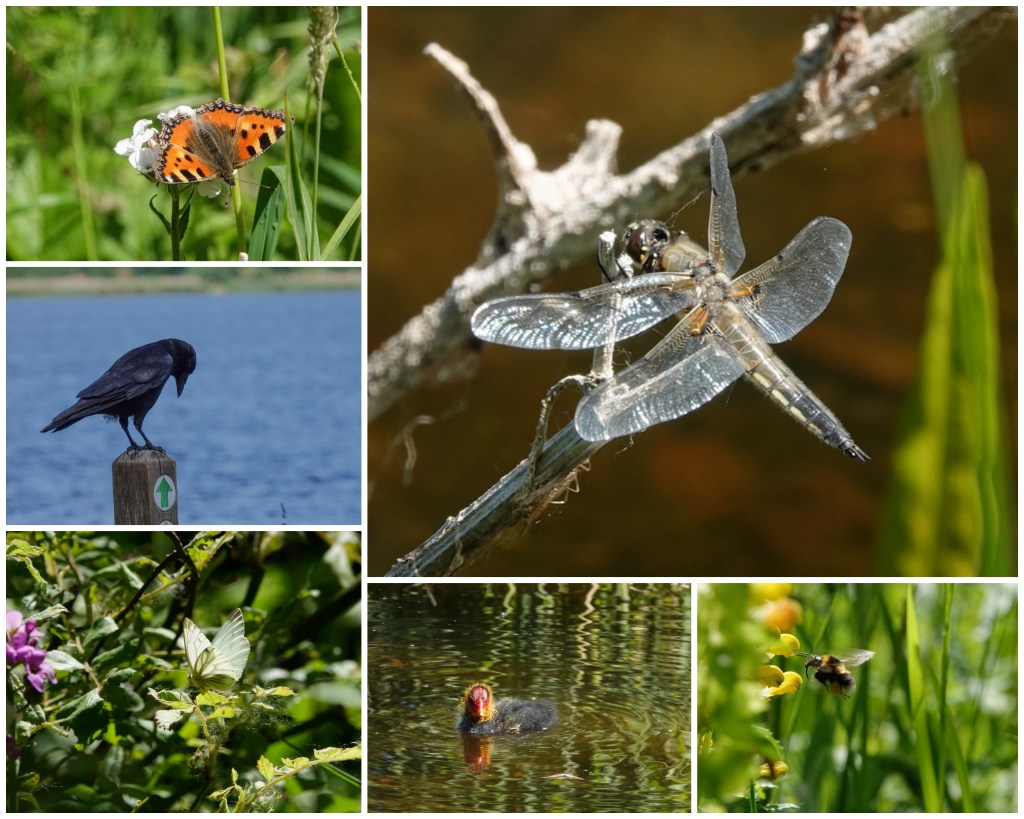 Het lukte me nog niet om de fragiele blauwe waterjuffers in mijn lens te vangen, maar deze dikke libelle had ik wel. Hij bleef lang stil zitten, altijd handig, zeker voor iemand, die de knoppen nog niet automatisch kan vinden. Op de terugweg gaf de plek waar het pontje aanmeert nog een toegift.