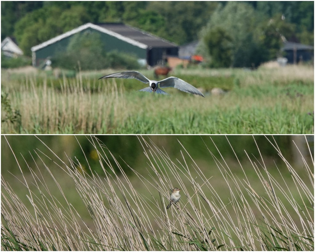 Verder kon ik nu zelfs van flinke afstand de rietzanger wat scherper krijgen. Het duikspel van een visdiefje op jacht leverde slechts één iets scherpere foto op, maar was zo leuk om te zien.