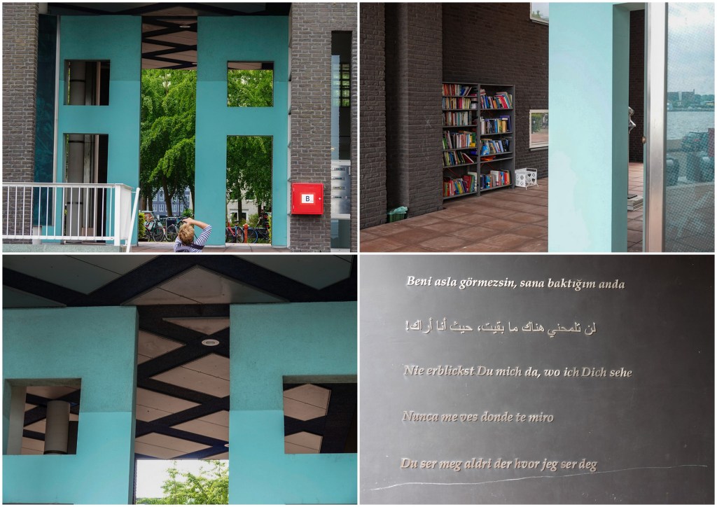 Architectuur is niet alleen de gevels, maar hier zie je hoe er is nagedacht over de hele samenstelling van zo’n smalle strook land met rondom water. Het geheel lijkt me een heel gezellige leefbare plek in Amsterdam, als je een paar centen hebt, uiteraard. Er was zoveel te zien, stof tot nog veel meer blogjes.