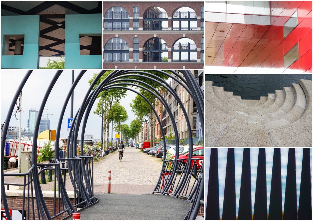 Als je er zelf rondloopt zie je ook allerlei soorten lijnen, recht, rond, symmetrisch, grillig, maar dat het een lijnenspel is waar je niet op uit gekeken raakt, dat is zeker. Even een impressie. Het begint al bij de Jan Schaefferbrug