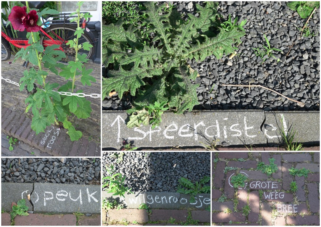 Leuk om zo te zien wat het allemaal is. Jammer genoeg heb ik nooit een krijtje bij me. En de namen van al dat “onkruid” ken ik ook niet goed genoeg. Maar het is prima dat we wat meer aandacht krijgen voor alles wat er groeit rondom ons.