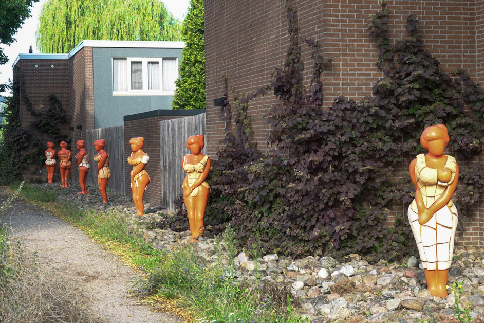 Ook mijn moeder heeft nog een korset gedragen, Leuk. die beeldengroep!