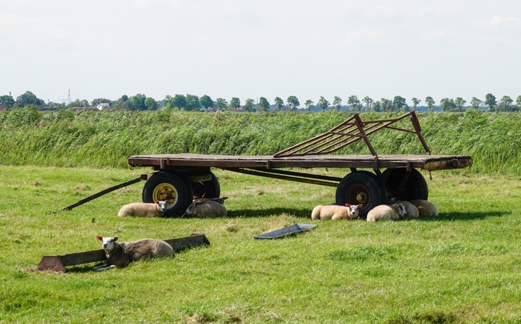 Deze schapen boffen, dat er een schaduwplek gecreëerd wordt voor hen.
