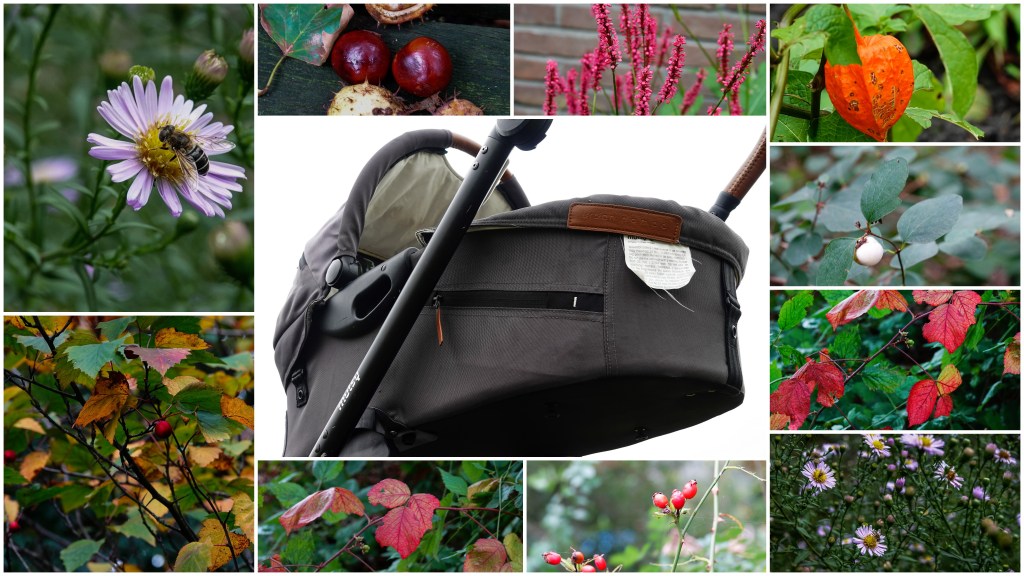 Het is heerlijk om met Fien te wandelen. Dus op onze oppasdag maakte ik een rondje met de wandelwagen en in het park bekeken we hoe het ervoor staat met de herfst. Ons park is op een moerasachtige ondergrond gemaakt. Dat geef ik de schuld, dat je er niet snel een paddenstoel zult zien, maar evengoed genoeg signalen waardoor je er niet omheen kunt, dat het herfst aan het worden is.