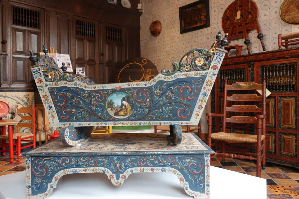 Deze wieg met Hindeloper schilderwerk zie je nu alleen nog maar in het museum.