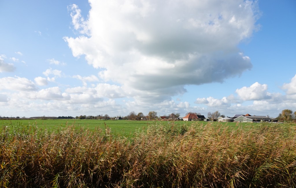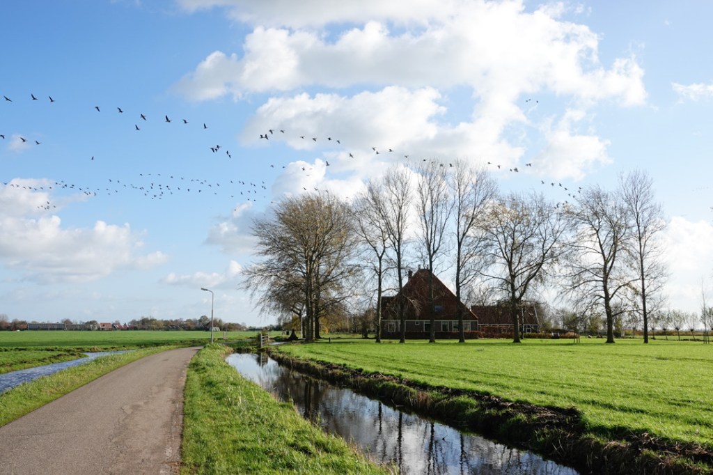 Na de winderige sombere dagen word ik helemaal blij van zo’n helderblauwe lucht. De temperatuur komt ook wat op een redelijker peil, passend bij de tijd van het jaar. Lekker fris. Kortom ideaal om in ons vlakke land van de luchten te genieten.