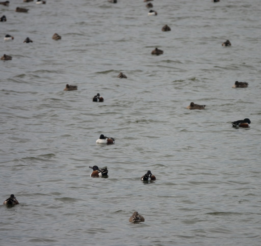 Het Kinselermeer lag vol vogels . Wij herkenden schmienten, maar volgens een voorbijkomende fietser zaten er ook kuifeenden en slobeenden, allemaal trekvogels op doortocht , die hier even uitrusten en voedsel zoeken.