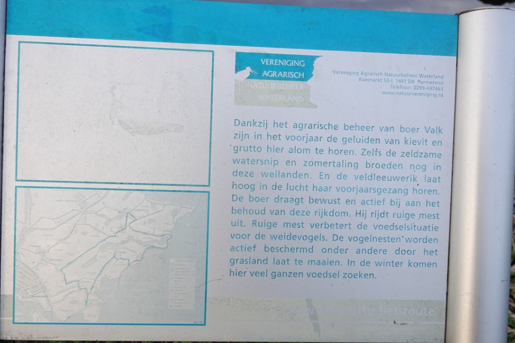 Wij zijn niet van die vogelkenners, maar we maakten een gezellig praatje met de man, inwoner van Holysloot en vogelaar. Hij was ook boer en maakte zich boos over zijn collega, die wandelaars zoals wij het moeilijk maken. Hij noemde het gewoon pesterij van zijn collega’s.
