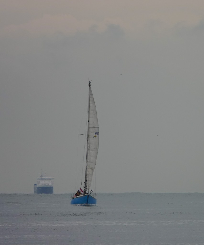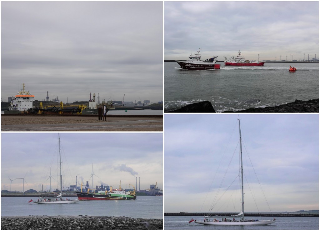 Aan deze kant is de haven en het zeegat met scheepvaart dichtbij en maakt het hier wel interessant.