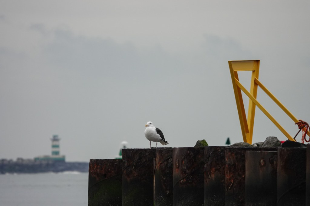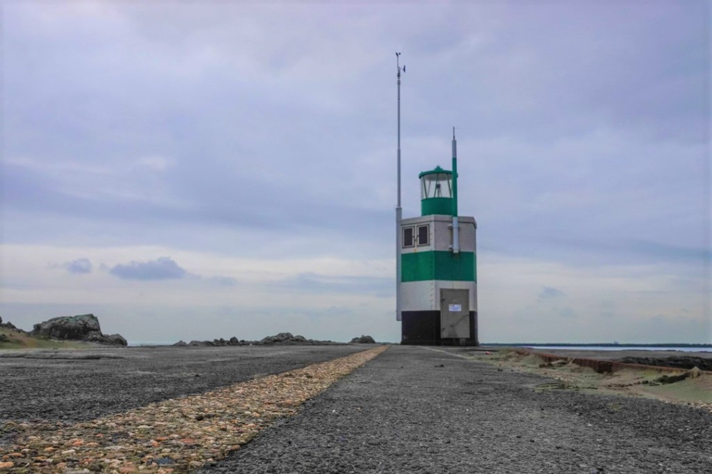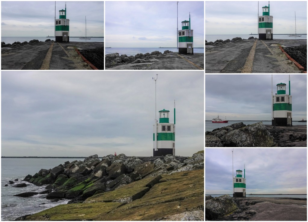 Het lichtbaken is aan deze kant van de pier groen en aan de overkant rood. Deze plek is zo’n punt, dat van allerlei standpunten en ook op andere tijden van de dag en per seizoen fotogeniek is.