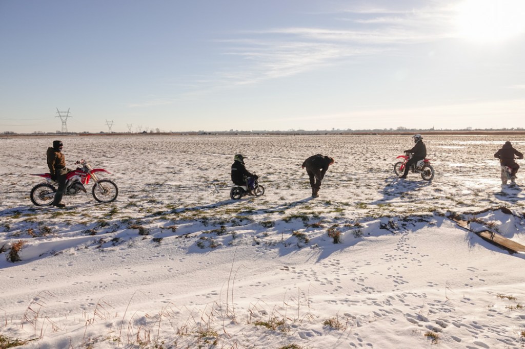 Ook de liefhebbers van gemotoriseerde sport kunnen iets met ijs. Deze jongens gingen voor het ijscrossen, gelukkig ergens ver weg in het land.
