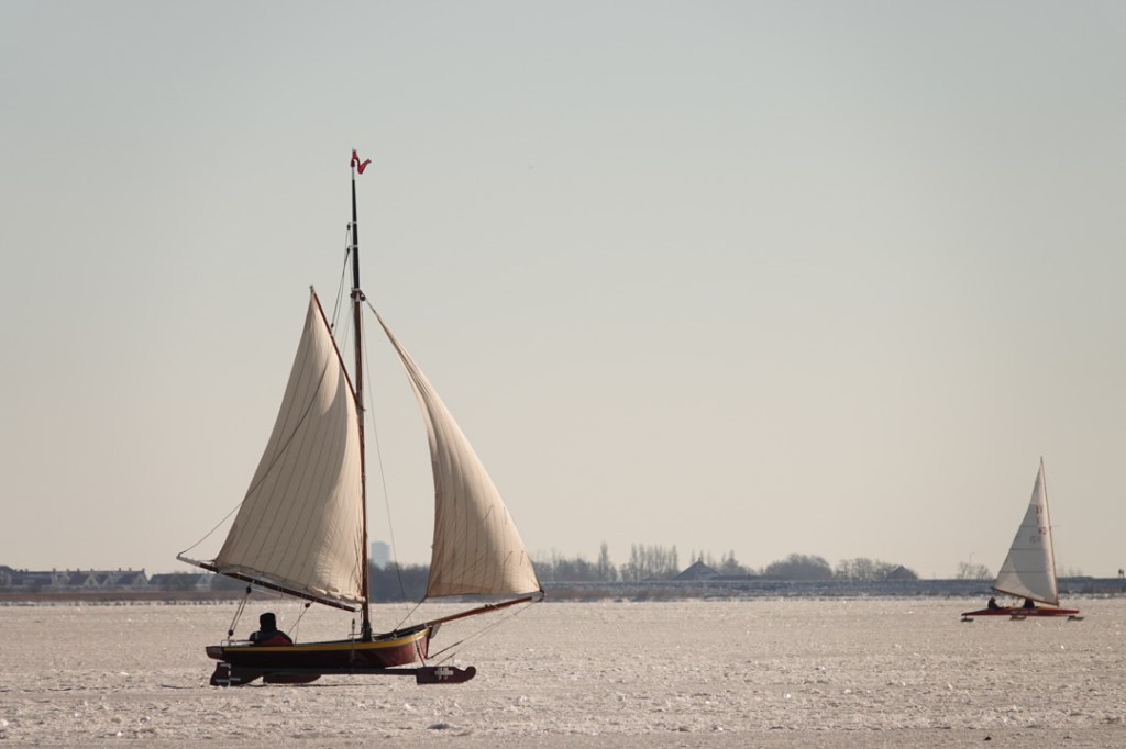 Verderop troffen we de ijszeilers aan met Marken op de achtergrond.