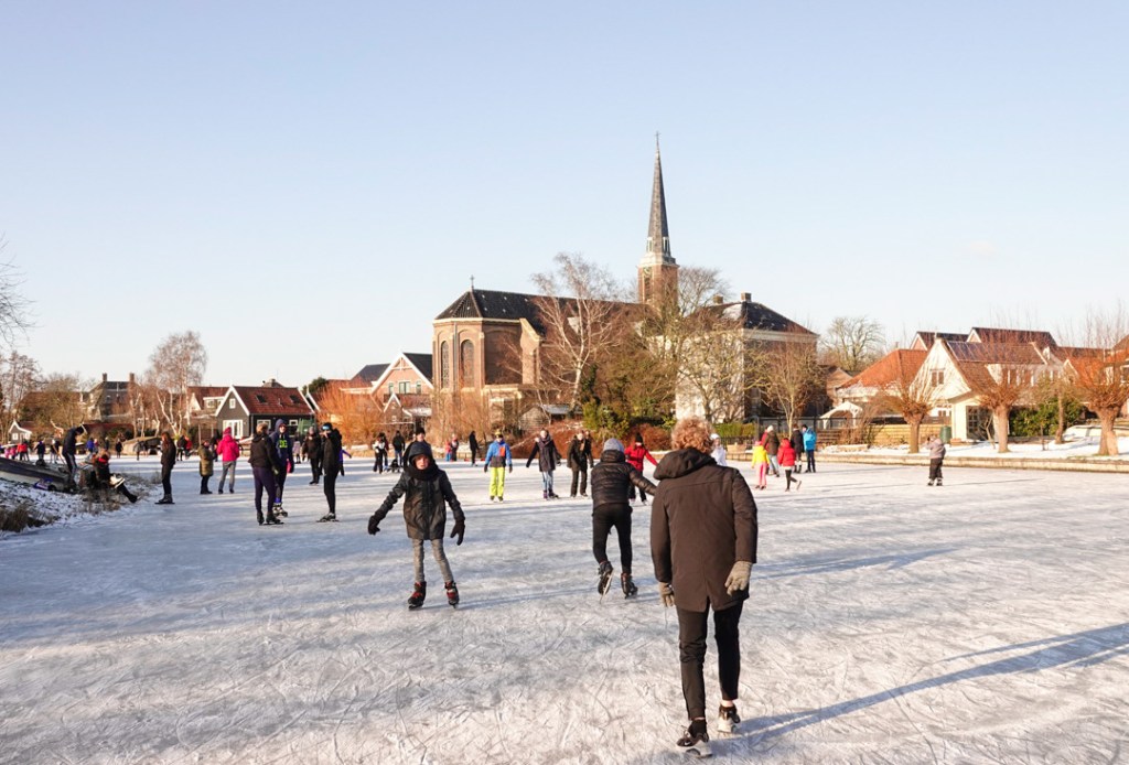 Al wandelend langs de Purmerringvaart zie je de betere schaatsers gaan. Je kunt hier overal in het land schaatsen, zo mooi!