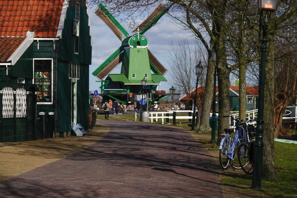Terugkijkend op de dag kan ik wel stellen, dat ik voorlopig genoeg molens gezien heb. Dat kan natuurlijk ook niet anders als je de toerist gaat uithangen op De Zaanse Schans. Ik had afgesproken met fotomaatje M. Aangezien de busladingen Japanners en ander buitenlandse toeristen wegblijven is het er heel rustig. Voor ons dus ideaal om er eens goed rond te kijken en te fotograferen. Dat had ik nog nooit gedaan. We fietsten of wandelden er wel langs, maar altijd op doortocht. En ook waren we altijd blij die Schans dan weer achter ons te kunnen laten vanwege alle drukte.