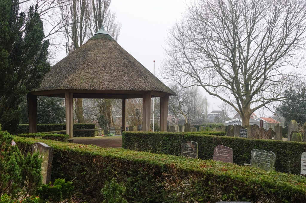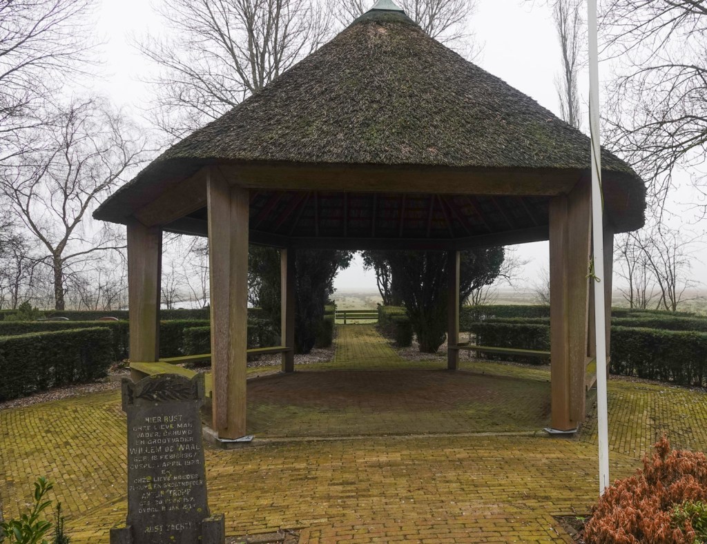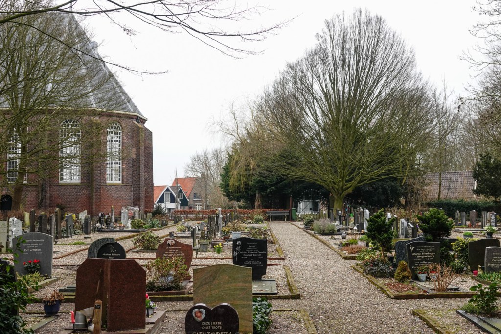 Als we ergens op vakantie zijn, bezoeken we graag kerkhoven. Altijd mooie stilteplekken, je komt er tot rust. In onze eigen omgeving doen we dat eigenlijk nooit. Vorige week wandelden we door Watergang. Dat doen we vaker en dan lopen we altijd langs de poort die naar het kerkhof van het dorpje voert. Dat ligt op een soort eiland. Die dag gingen we er voor het eerst doorheen en wat een verrassend mooie plek is dat hier.