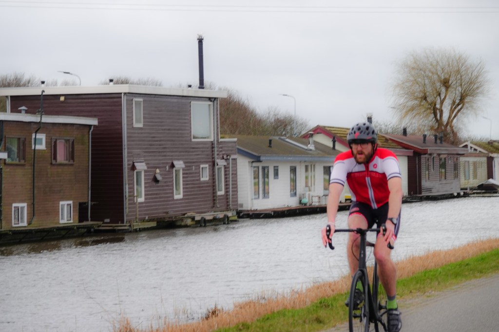 Het viel ons op, dat we regelmatig mensen tegen kwamen of dat we werden ingehaald. Op door-de-weekse dagen is het toch aanmerkelijk rustiger, maar deze zondag zullen wij ook wel niet de enigen geweest zijn, die blij waren weer eens even de deur uit te kunnen zonder weggeblazen te worden of een doorweekt pak op te lopen.