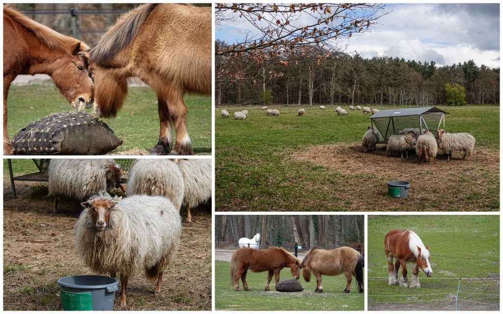 Het bos wisselde af met open gebieden. Daar liepen aparte schapen en op veel van die plekken zagen we paarden.