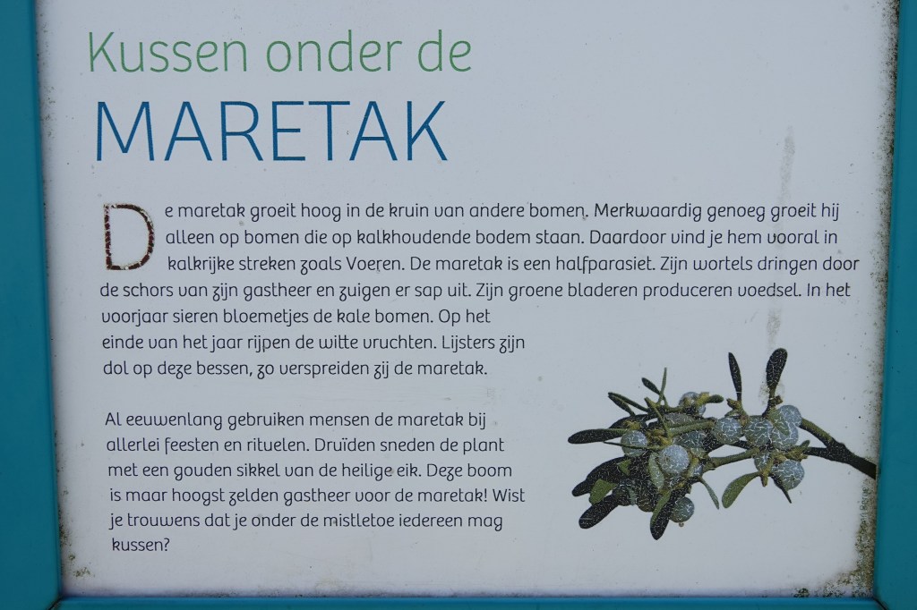 Weer een schitterende wandeling en vooral een zeer mooie kijk op de omgeving dank zij jullie foto’s. De vele maretakken in de bomen waren me ook meteen opgevallen toen we richting de B/NL grens bij Maastricht reden. Die gedijen daar inderdaad uitzonderlijk goed.