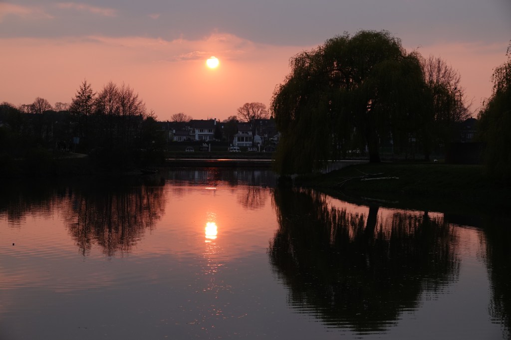 Zo kwam er een eind aan 3 prachtige wandeldagen in het Zuid-Limburgse land. En weer terug in Maastricht, ging de zon ook nog mooi onder. Het was genieten.