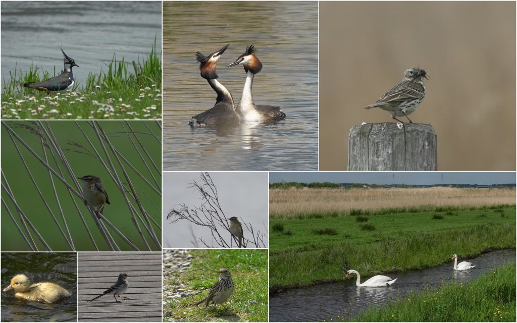 Ondertussen heb ik weer allerlei vogels proberen vast te leggen. Hele gewone soorten, maar doordat ik ze nu zo dichtbij kan halen met mijn camera, zie ik pas echt de schoonheid van die beestjes. V.l.n.r. kievit, baltsende Futen, graspieper, rietzanger 2x, zwanen, eendenkuiken, kwikstaart, graspieper 2 en een zwanenstel.
