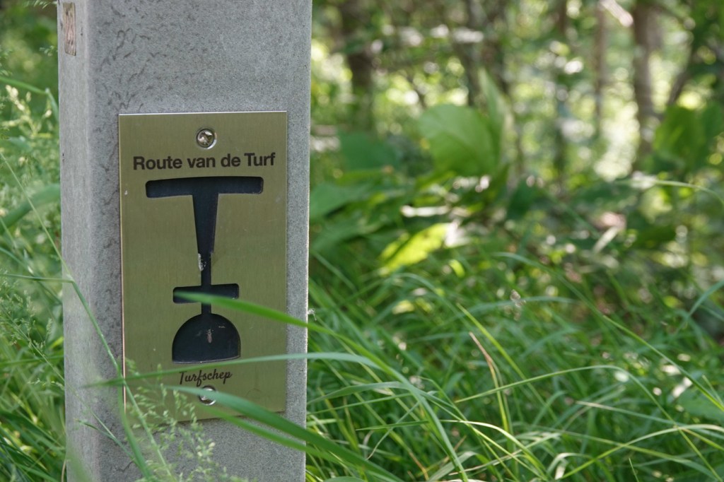 De route is gemarkeerd met het teken van een oude turfschep, dus dat teken hoef je maar te volgen.