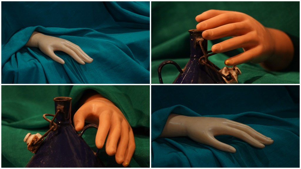 Het atelier stond vol met attributen, die wij mochten gebruiken om opstellingen te maken voor de foto. Het was geweldig om te doen. We inspireerden elkaar en er kwam heel wat creativiteit naar boven. We zagen op een gegeven moment in alles wel een onderwerp voor de foto. Je ziet dan ook een serie, die heel divers is.